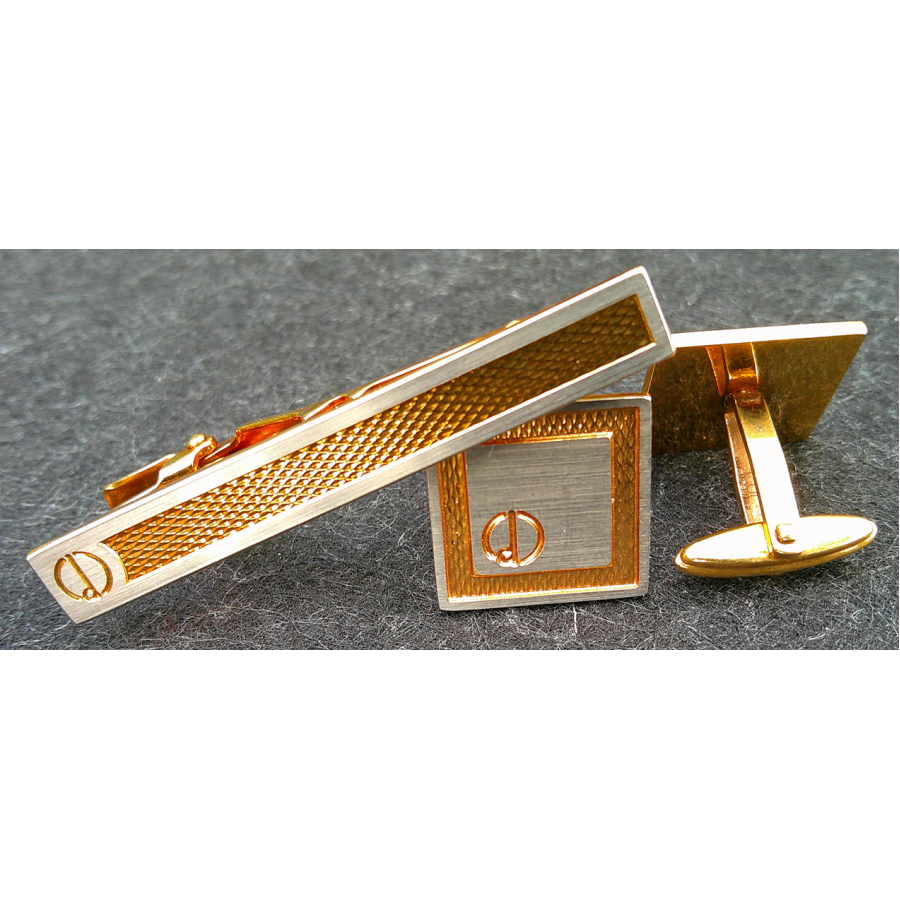 A Classic Alfred Dunhill Brushed Gold and Sliver Tone Tie Clip and Cufflink Set